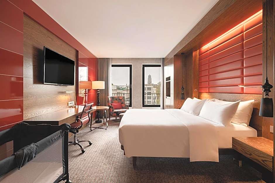 This spacious suite, with a separate living room and dining area, offers views over the skyline of The Hague. The bathroom is fitted with a bath and a walk-in shower. Guests can enjoy access to the Executive Lounge which features a private terrace during sunny days. This air-conditioned suite comes with a flat-screen, working desk, laptop safe and WiFi access. Coffee/tea making facilities, including a Nespresso, are available. The Executive Lounge is daily opened from 7.00 until 20.00 - Beverages, canapés and snacks served between 17.00 until 19.00 - Guests with Executive Lounge access receive free breakfast in our restaurant.