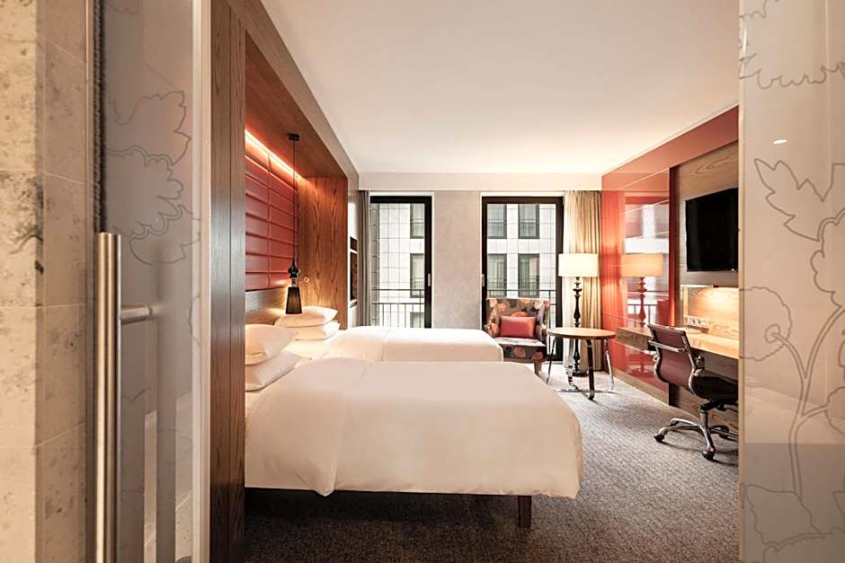 This room offers views of the city or our courtyard, the room is equipped with a spacious bathroom, with separate shower and bathtub, a working desk, laptop safe and WiFi access, coffee/tea making facilities are available. Guests can enjoy access to the Executive Lounge which features a private terrace during sunny weather. The Executive Lounge is daily opened from 7.00 until 20.00 - Beverages, canapés and snacks served between 17.00 until 19.00 - Guests with Executive Lounge access receive free breakfast in our restaurant.